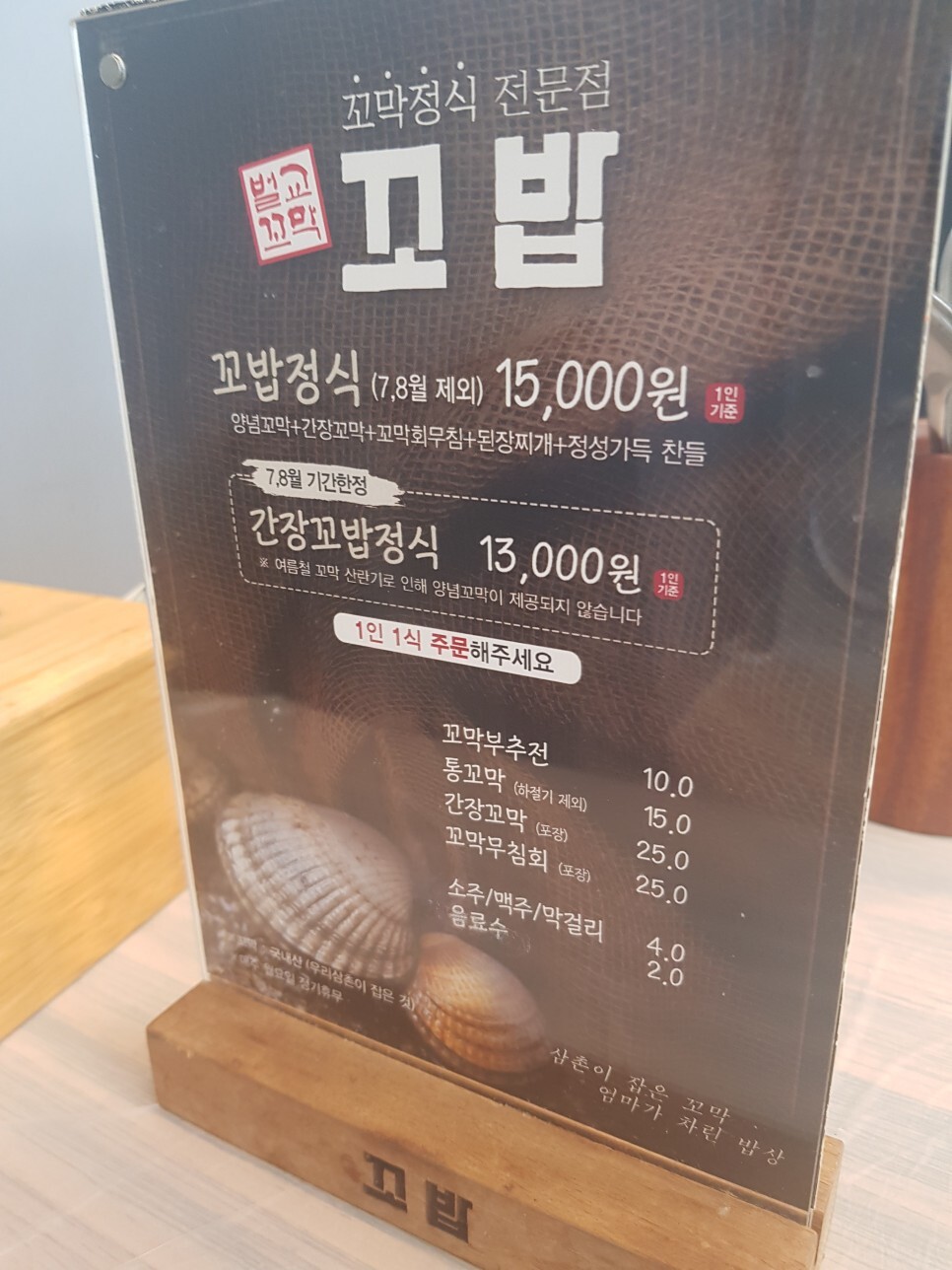 7,8월은 여름철 꼬막 산란기로 양념꼬막이 제공되지 않는다고 하네요.